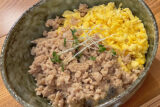 ⑪ごはんにかけ、お好みでピクルスを添えれば出来上がり