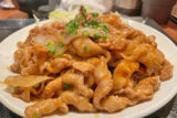 ⑦しょうがを加え、片栗粉の衣にたれを吸わせるように、汁けがなくなるまでからめる