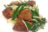⑥④を戻し入れて強火にし、③を2~3回に分けて加えて炒め、器に盛れば出来上がり