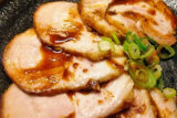 ⑥③の蒸し豚に竹串を刺して火通りを確認し、7~8mm厚さに切り、器に⑤と共に盛り、④を添えれば出来上がり