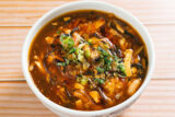 あったか具だくさん料理「鮭ともずくの酸辣湯(サンラータン)スープ」の作り方を紹介します。