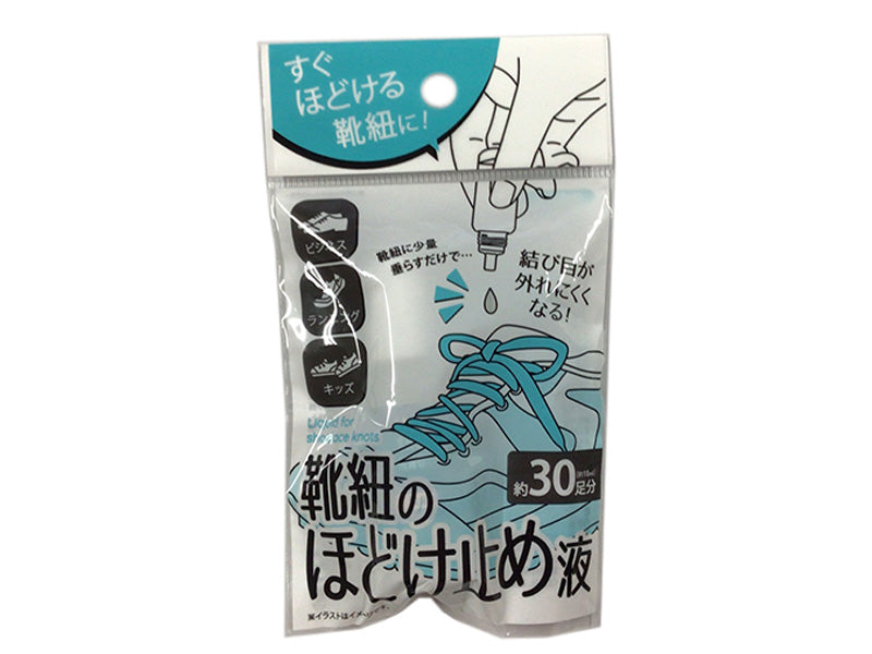 靴紐の結び目に数滴たらして1時間ほど乾燥させるだけで結び目を程よく固めてくれるイライラ解消グッズです。