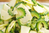 ②スベリヒユの葉、ししとう(1cm幅)、ピーマン(1~2cmの正方形)、青唐辛子(1cm幅)、ナス(1cm幅)、ツルムラサキ(1cm幅)を刻み、一つのボウルにまとめる