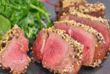 コストコのヒレステーキに柚子胡椒とゴマを合わせてゆずドレッシングサラダと頂く肉料理。