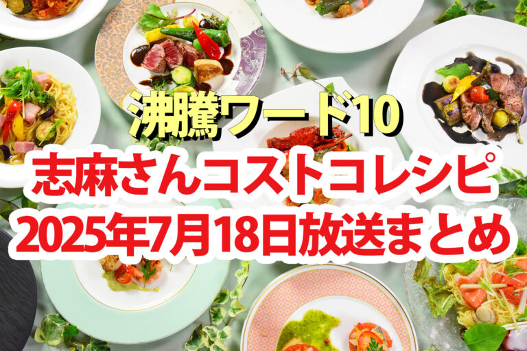 2025年7月18日(金)放送の『沸騰ワード10』。初見の食材で15品以上の絶品料理を生み出す伝説の家政婦タサン志麻(しま)さんの「沸騰ワード10年目突入記念コストコ女優矢田×志麻さん夢の初コラボSP」で紹介されたコストコ食材を使ったホームパーティーフルコース最新メニュー12品の作り方をまとめました。