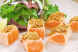 レアに焼いたコストコのサーモンフィレを粒マスタードと万能ごまで味付けした志麻さん流アレンジサーモン。