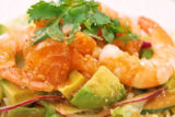 コストコのサーモンポキとシュリンプカクテルをトッピングしてナンプラーソースを回しかけたエスニック風の冷やし中華。