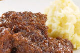リンゴピューレで下味をつけたコストコのミスジ肉を黒ビールで1時間じっくり煮込んだとろとろ煮込み。