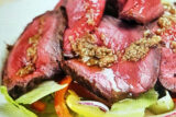 魚・肉・野菜の全てに合う万能ソースで食べるローストビーフサラダ。