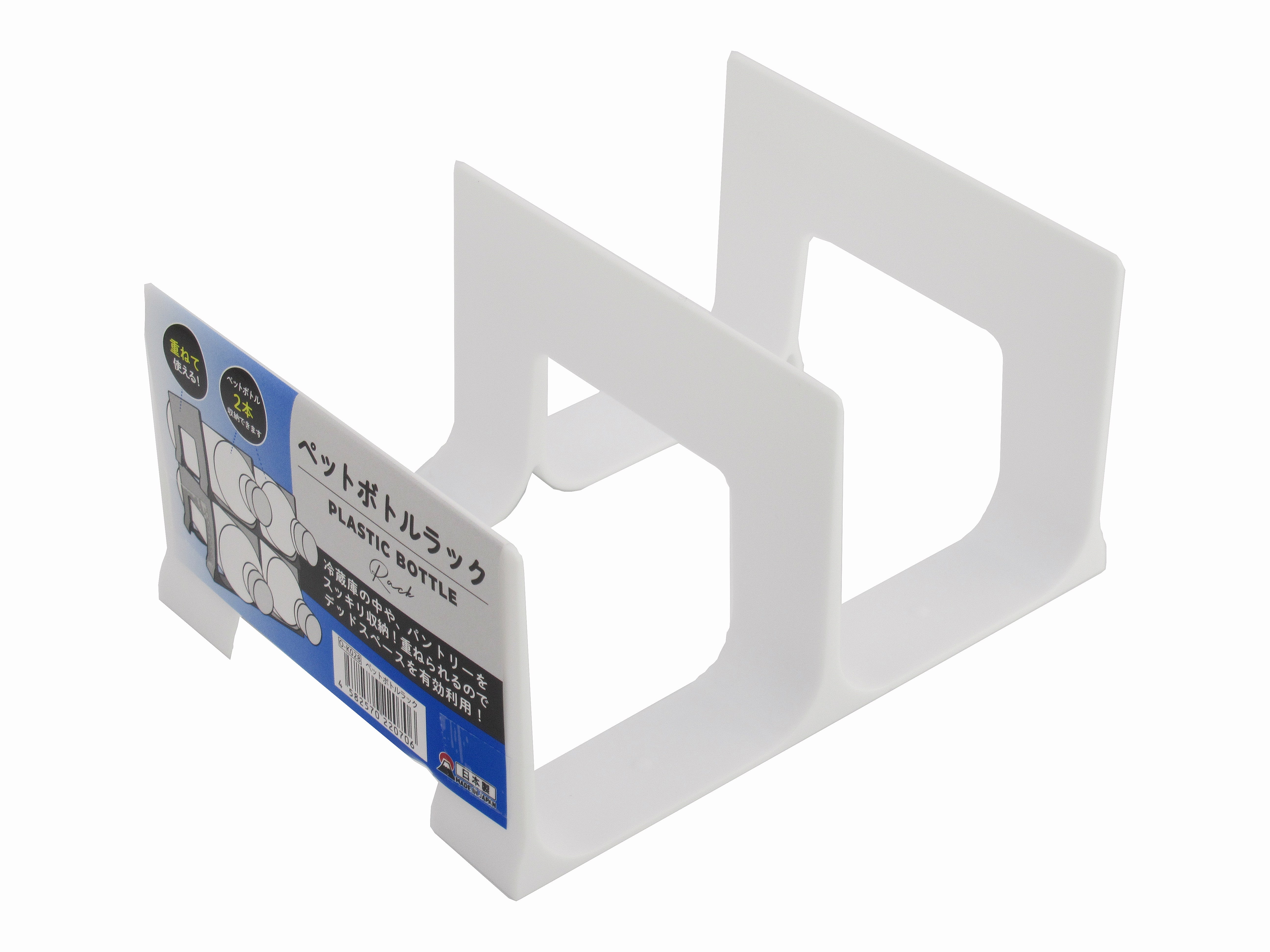 冷蔵庫や戸棚に立てておくと奥のボトルを出すのが面倒で、寝かしておくと転がったり山が崩れたりしてしまうペットボトルを、シンプルな作りでしっかり固定してくれる便利アイテム。