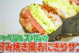 春キャベツ&スパムのお好み焼き風おにぎりサンド