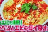 春キャベツとエビのタイ風オムレツ