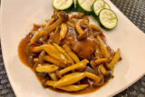 ③粗熱が取れた【C】と②の牛肉、煮汁を保存袋に入れて30分以上置き、5~7mm幅に切り、袋に残ったタレを添えれば出来上がり