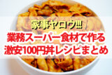 【家事ヤロウ】業務スーパー食材で作る激安100円丼レシピまとめ