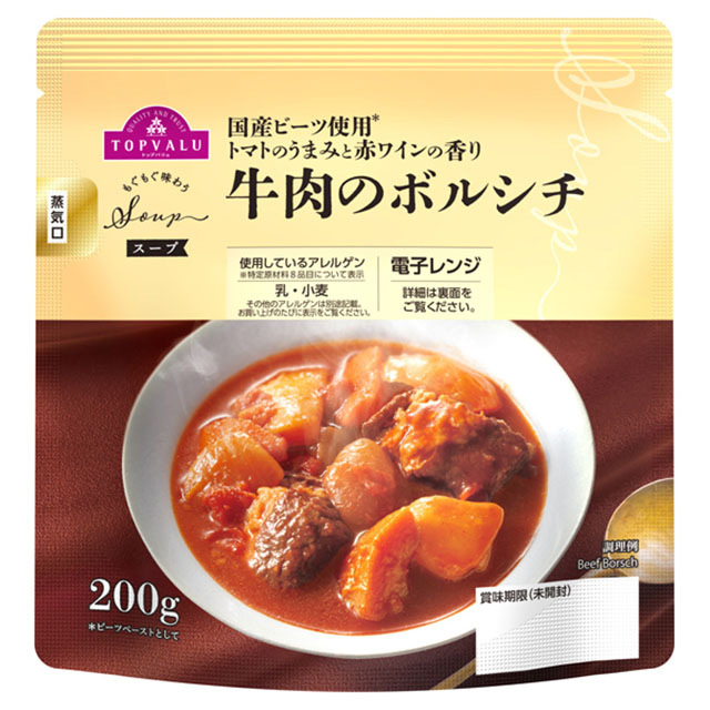 - 国産ビーツ使用 トマトのうまみと赤ワインの香り 牛肉のボルシチ 429円