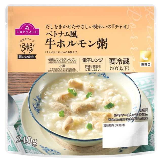 ベトナムのお粥は味がしっかりついていて、具材はウナギや内臓を入れるのが特徴ですが、この商品は日本人に馴染みのあるホルモンを使っています。