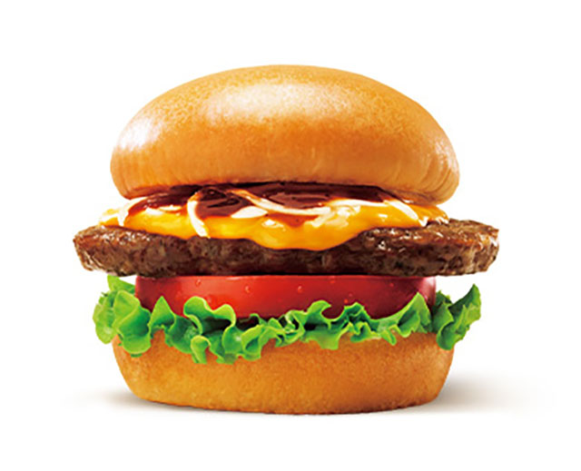肉の食感がしっかりと感じられるジューシーなパティを国産野菜の上にのせ、その上に塗る北海道産ゴーダチーズにチェダーとパルメザンを加えることで、パティに負けないコク・風味・まろやかさのあるチーズに。