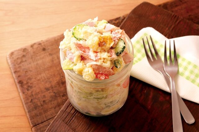 そこにきゅうりなどの野菜とベーコンを加え、あっさり目のマヨネーズと和えることで素材の旨味を最大限味わえるように仕上げています。