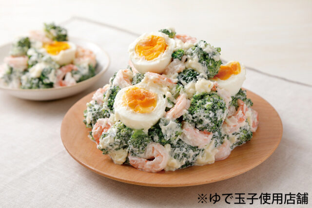 味付けのマヨネーズは酢の量を控えめにすることで海老とブロッコリーの味を引き立たせるようにしています。