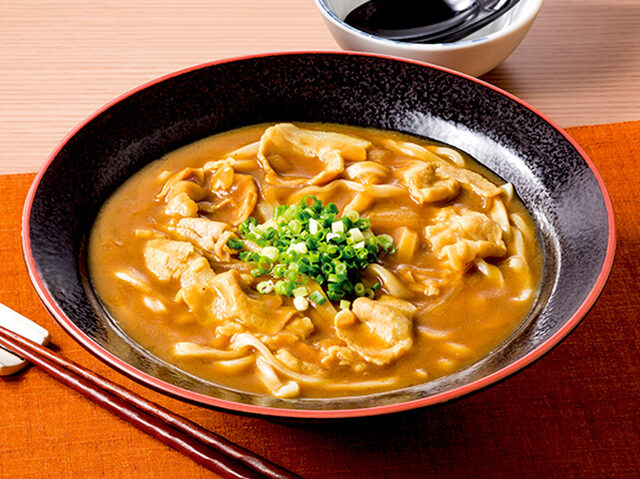 カレーにサバ・ウルメイワシ・宗田ガツオの3種類をブレンドした混合節を加えることで、ダシの効いた昔ながらのカレーうどんに仕上げています。