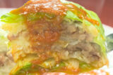 ⑥肉だねをキャベツで巻き、それぞれにコーン1粒を中心にのせる