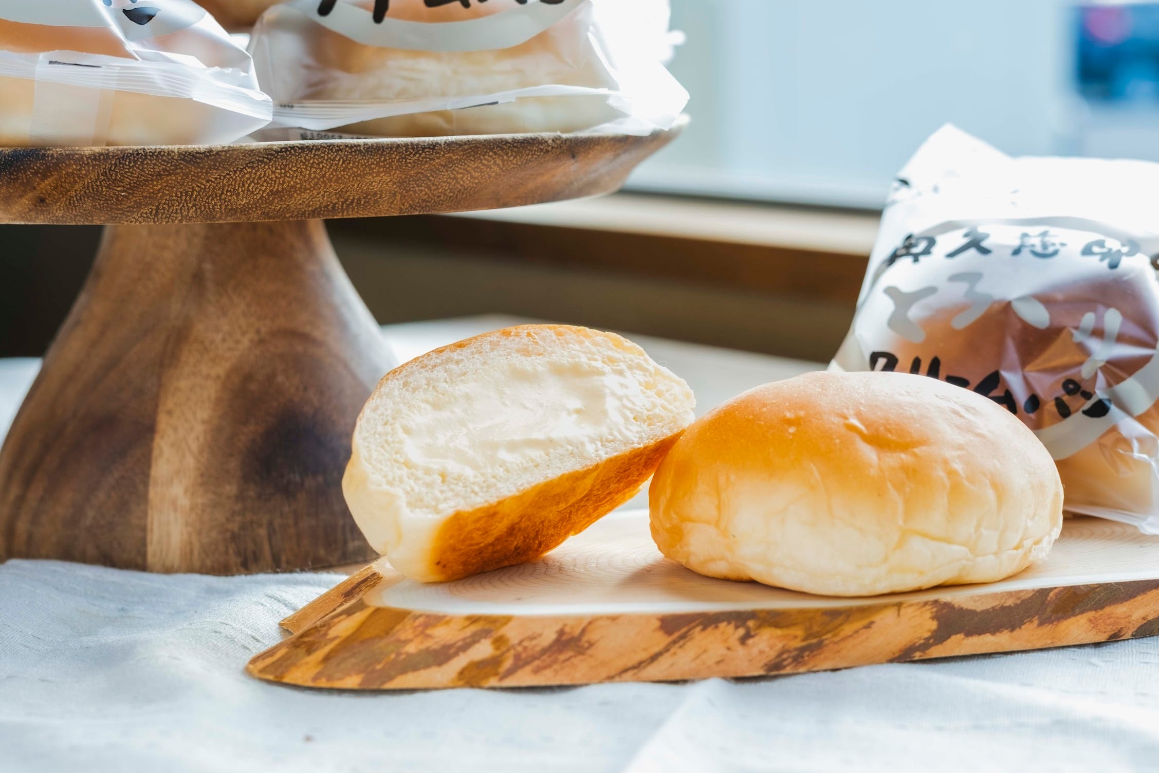 自然発酵させた生地をじっくり焼いたコッペパンの中に、たっぷりの自家製生クリームを入れました。
