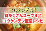 【ヒルナンデス】具だくさんスープレシピ4品まとめ|豆乳キムチスープ・タラとトマトのスープ・カリフラワーのほっこりスープ・豚と白菜の中華スープ