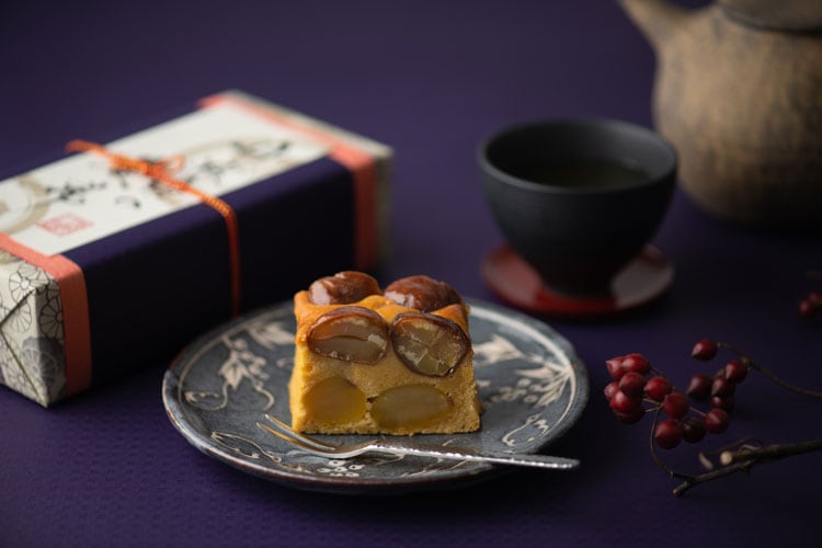 ぼる塾田辺さんおすすめスイーツ、驚くほど甘みが強い種子島産『黄金蜜芋』を生地にたっぷりと使用した和栗のケーキです。