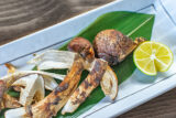①松茸は石づきを削り取り、軽く拭く。手で食べやすい大きさに割き、土瓶に入れる