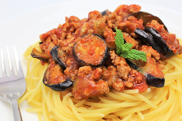 ナスのミートソースパスタ