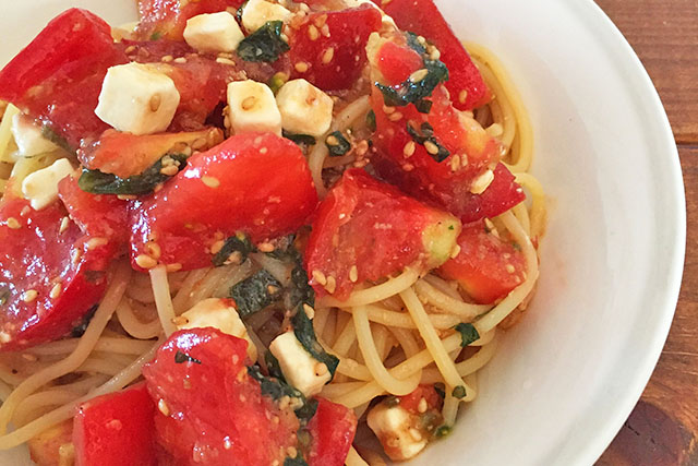 塩昆布和えトマトの冷製パスタ