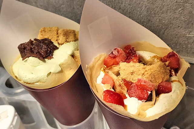 生地を焼いたあと具材を入れずに巻くのが特徴で、生地を器に見立てて具材を入れていくカフェスタイルのクレープ。