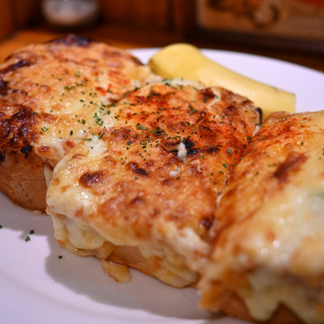 ポテトサラダとコンビーフを混ぜてトーストし、たっぷりのチーズと一緒にサンドした逸品です。