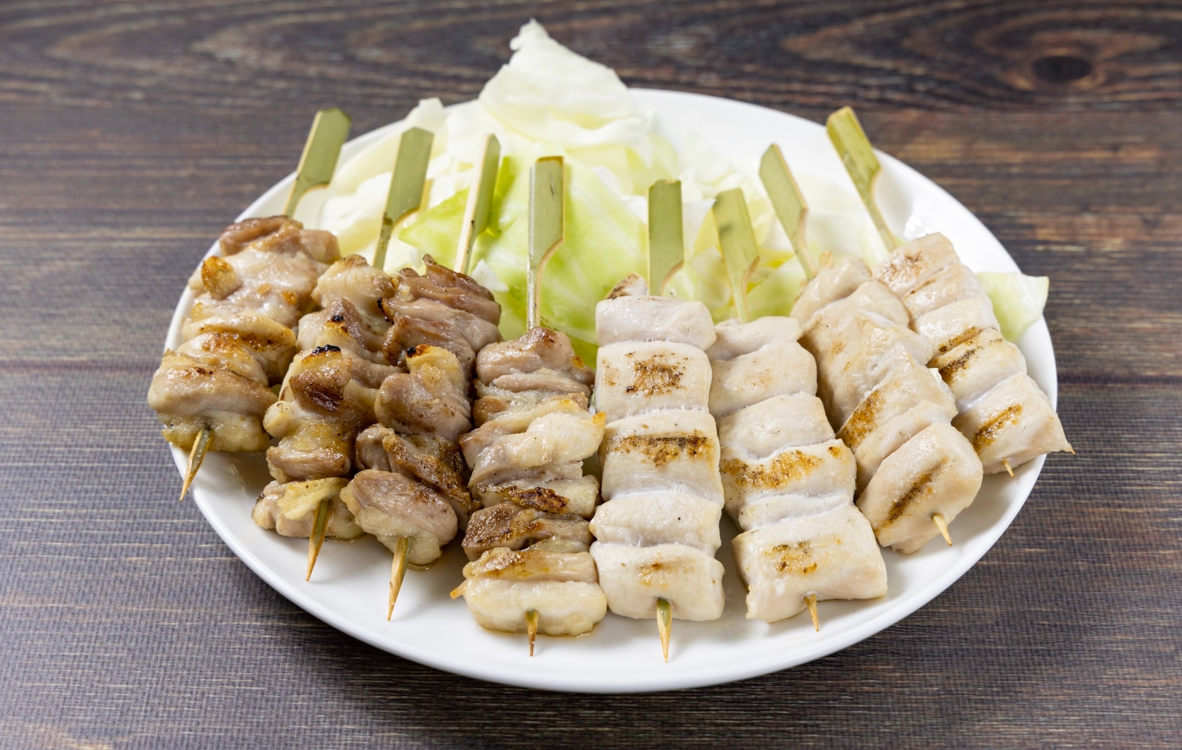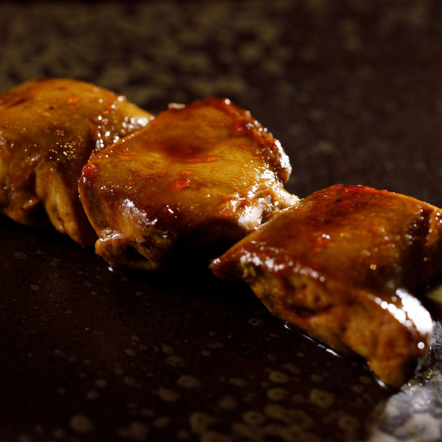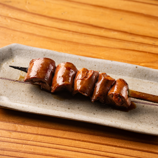 皮やモツ(レバー・ハツ・砂肝・キンカン)など、様々な部位の肉が1本に刺してある「ミックス焼き鳥」が有名。