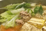 ⑤④の【洋そぼろ】が入ったフライパンにお湯を約2カップ分入れる。水分が少なくなったら少しずつお湯を足す