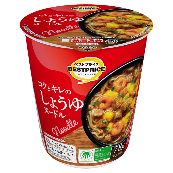 コストパフォーマンス1位:イオントップバリュ トップバリュベストプライス コクとキレのしょうゆヌードル 116円