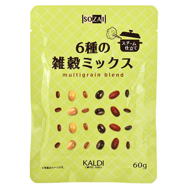 もち大麦・大豆・小豆・黒米・赤米・黒大豆の6種類が入った雑穀ミックスです。