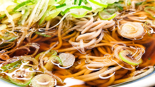 最小限の小麦粉を使いそばの風味を際立たせたという独自配合で、あたたかいつゆがその香りをより引き立たせます。