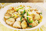 ⑤そこへ、鶏ガラスープの素、レモン汁、しょうゆ、砂糖、ごま油を加えて、さっと和える