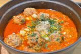 「豚スペアリブのオレンジ焼き」はスペアリブと一緒に焼いたオレンジを皿の上でギューッとつぶすと、香りのよいソースになります。みかんや日向夏など、季節のかんきつなら何でもかまいません。