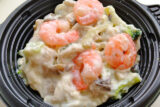 ④フライパンに①のベーコンとたまねぎを入れ、たまねぎがしんなりとするまで中火で炒める。キャベツを加えてざっと混ぜ、③を戻し入れて白ワインを加え、ひと煮立ちさせる
