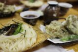 カツオ節・ネギ・海苔・紅葉おろしなどの薬味や、特製そばつゆをお好みの量加えていただきます。