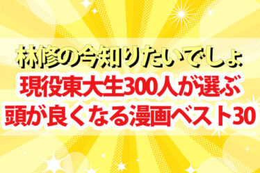 エンタメ 【林修の今知りたいでしょ】東大生が選ぶ頭が良くなる漫画ランキングBEST30