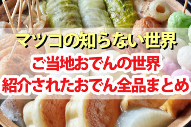 2021年9月28日(火)放送の『マツコの知らないご当地おでんの世界』。全国300店舗のおでんを食べ歩いた名物おでん探究家の柳生九兵衛さんがおすすめご当地おでんを教えてくれましたので紹介します。石巻の『鯖天』、小田原の『いか墨つみれ』、石川...