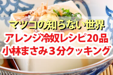 2022年8月9日(火)放送の『マツコの知らない冷奴の世界』。3分クッキング料理研究家の小林まさみ先生&義父のまさるさん直伝!簡単アレンジ冷奴トッピングレシピを紹介します。アシスタントのまさるさん(89歳)との名コンビで絶品トッピングの数々...