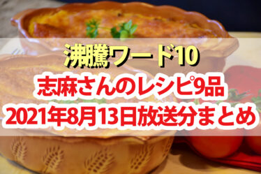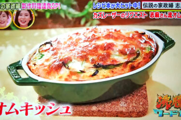 2021年9月24日(金)放送の『沸騰ワード10』。初見の食材で15品以上の絶品料理を生み出す伝説の家政婦、タサン志麻(しま)さんの密着第28弾!今回の依頼者は奈緒さん、しずちゃん、浅香航大さんの3人。この記事ではリンゴとセロリのベーコンド...