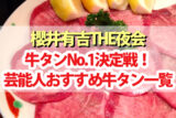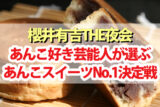 2023年5月18日(木)放送の『櫻井・有吉THE夜会』カレーNo.1決定戦。YOSHIKIさんにおすすめ!カレー好き芸能人の櫻井翔さん、有吉弘行さん、みちょぱさん、狩野英孝さん、ぺこぱ松陰寺さん愛用イチ押しカレー店を紹介します。