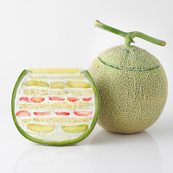 神戸『Atelier Kato』監修、マスクメロンをまるまる一個使用したメロンケーキです。