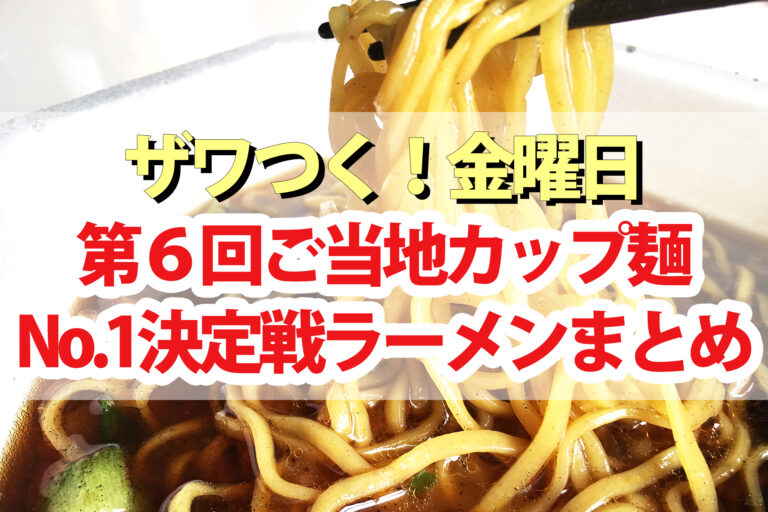 2023年1月20日(金)放送の『ザワつく金曜日』第6回全国ご当地カップ麺No.1決定戦。ご当地カップラーメンランキング1位(優勝)結果一覧とネット通販お取り寄せ方法を紹介します。
