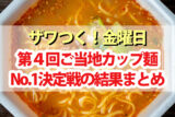 2023年4月14日(金)放送の『ザワつく金曜日』第7回全国ご当地カップ麺No.1決定戦。ご当地カップラーメンランキング第1位(優勝)結果一覧とネット通販お取り寄せ購入方法を紹介します。